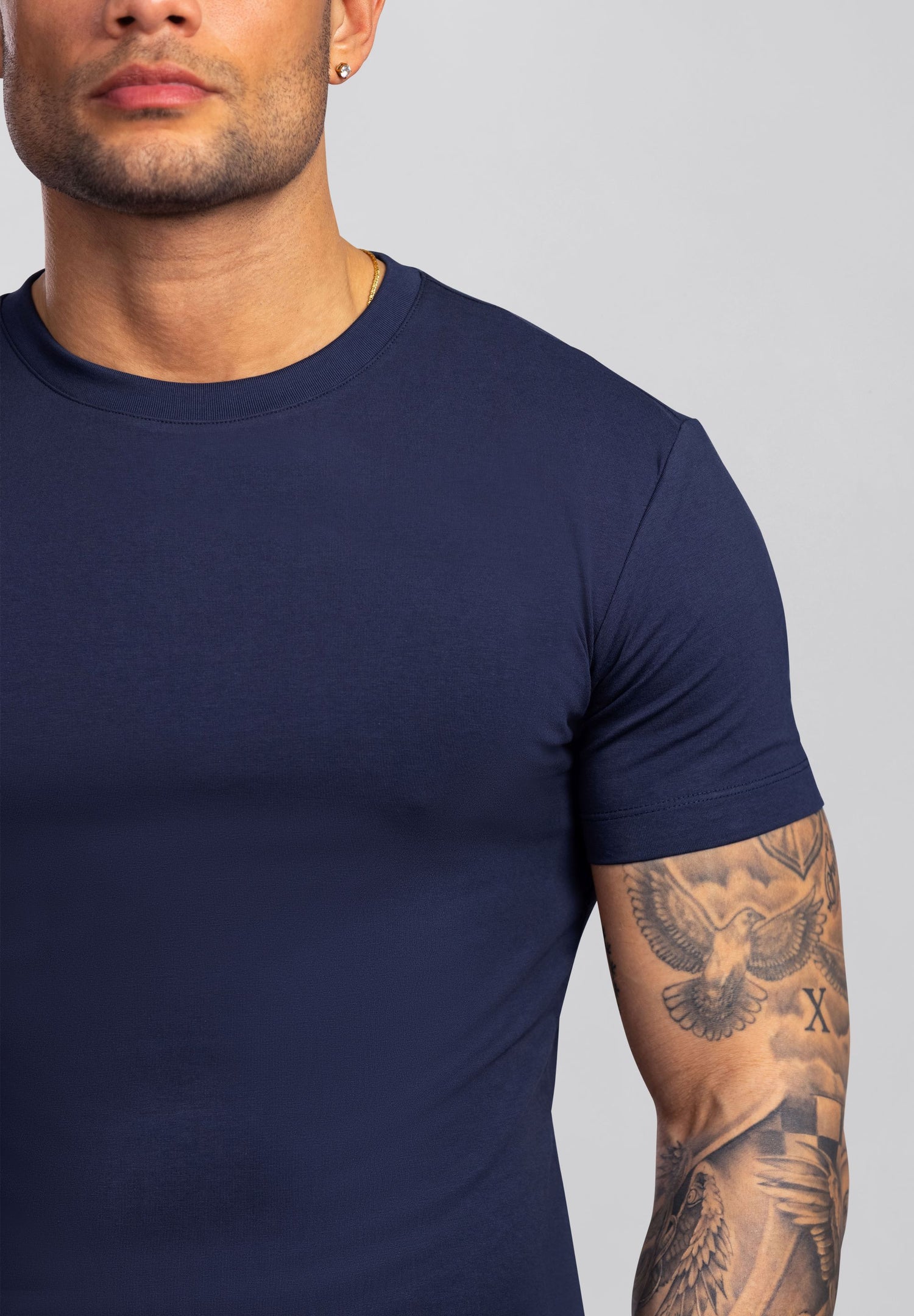 Die klassische Naht verleiht dem T-Shirt einen seriöseren Look und sorgt gleichzeitig für eine markante, maskuline Silhouette.